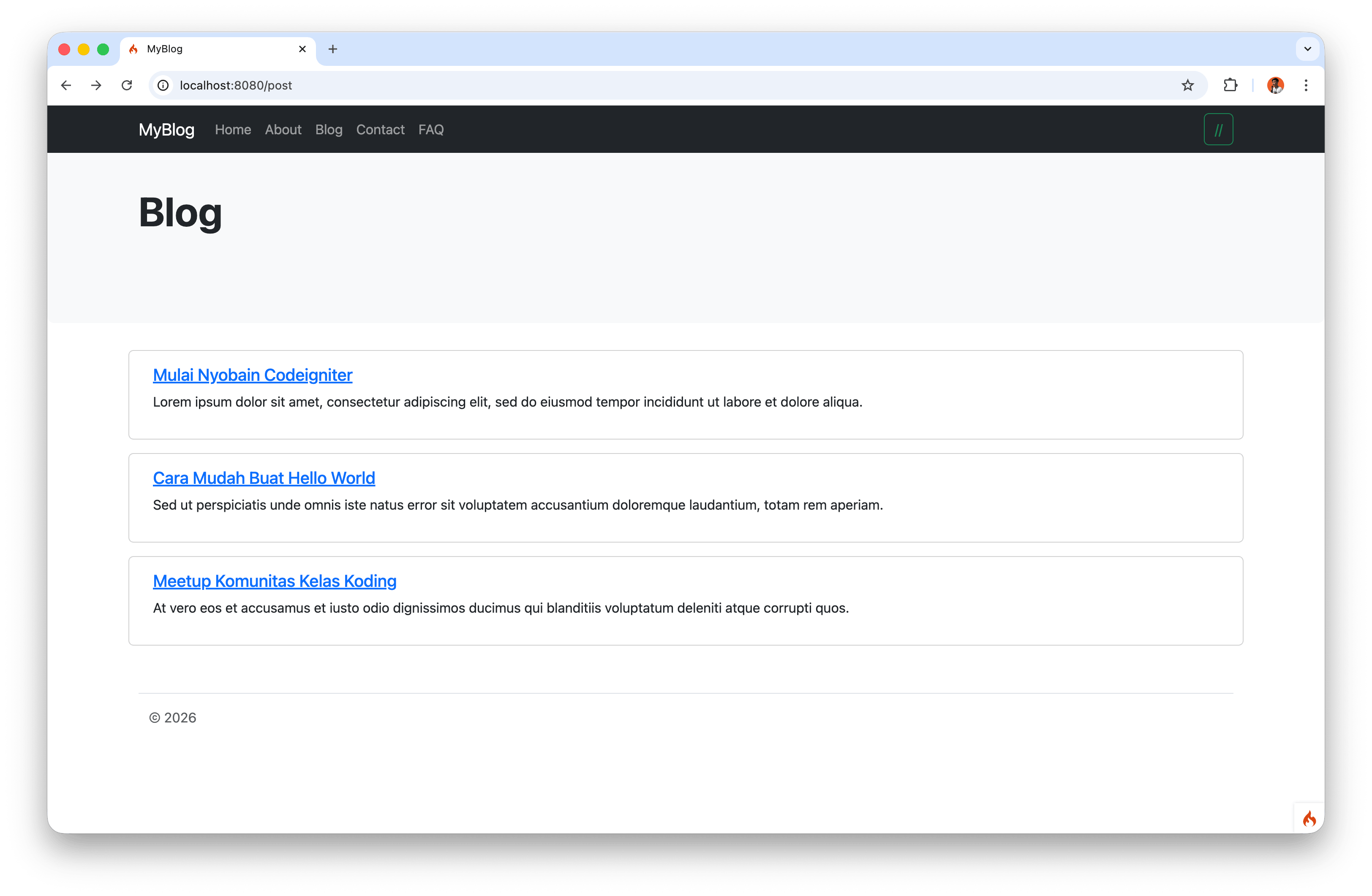 Praktik ini menunjukkan bahwa layouting di CI4 bisa langsung diintegrasikan dengan template statis populer seperti iPortfolio melalui pendekatan modular.
