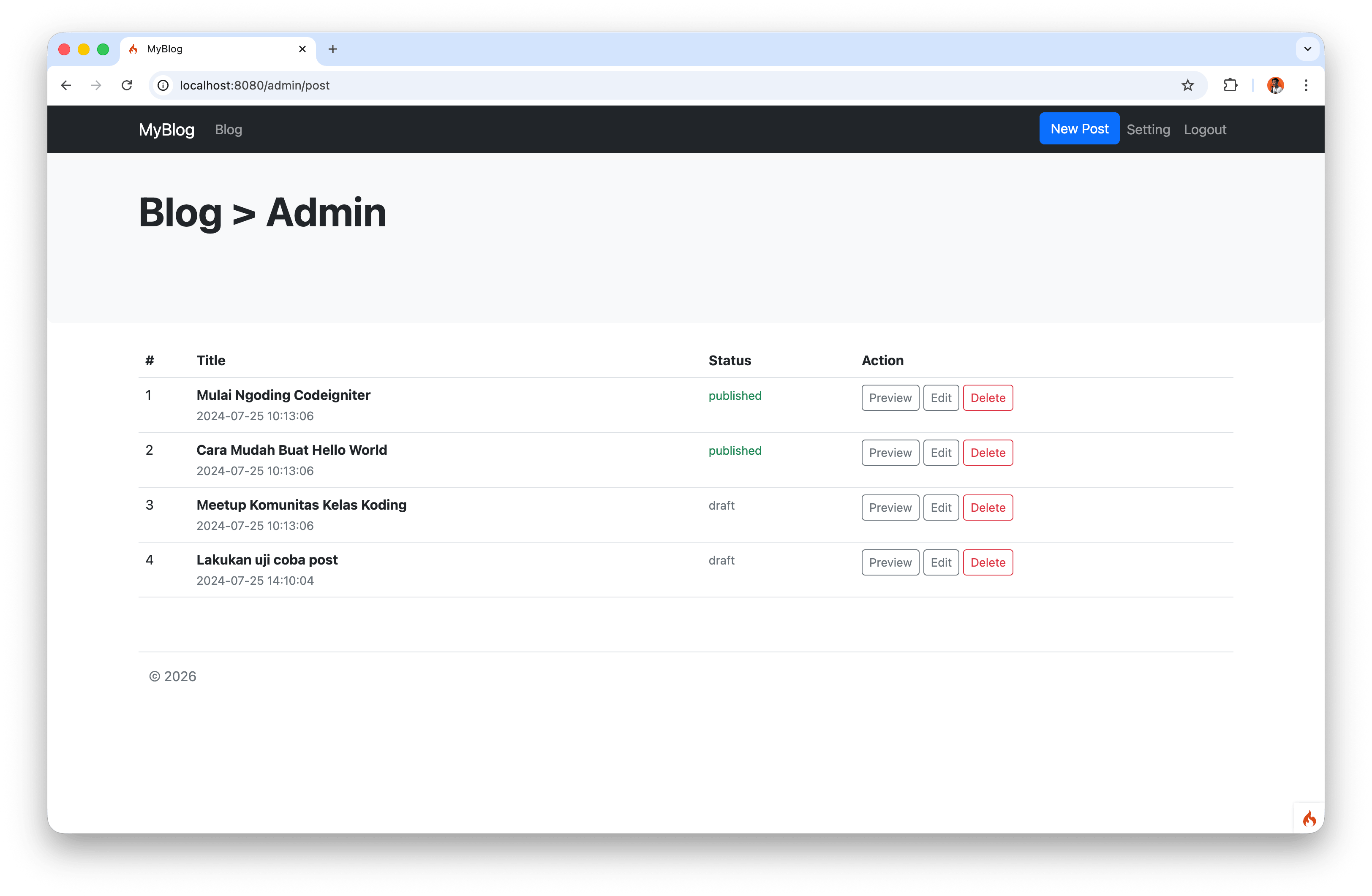Contoh kode footer pada app/Views/layouts/footer.php: